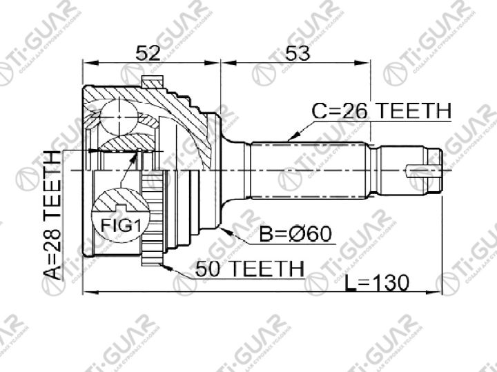ШРУС наружный /передний левый /правый /TI-GUAR для Honda Civic Ferio 2000- ES1 D15B; 28*60*26; TG-4454Z50; (LG-HN-54A50 HO054 HO054A50) 0310054A50 44014S5A951